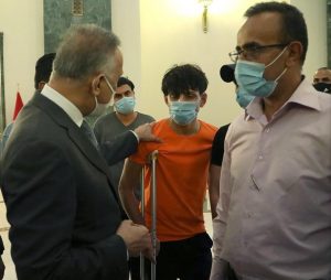 وتعهد الكاظمي بتأمين علاج جرحى المتظاهرين، ونقل بعضهم للعلاج الى خارج العراق إنْ تطلّب الأمر، فضلا عن بحث شمولهم باستثناءات رواتب شبكة الحماية الاجتماعية، كما تعهد باتخاذ كل الإجراءات القانونية اللازمة من أجل استرجاع حقوقهم.