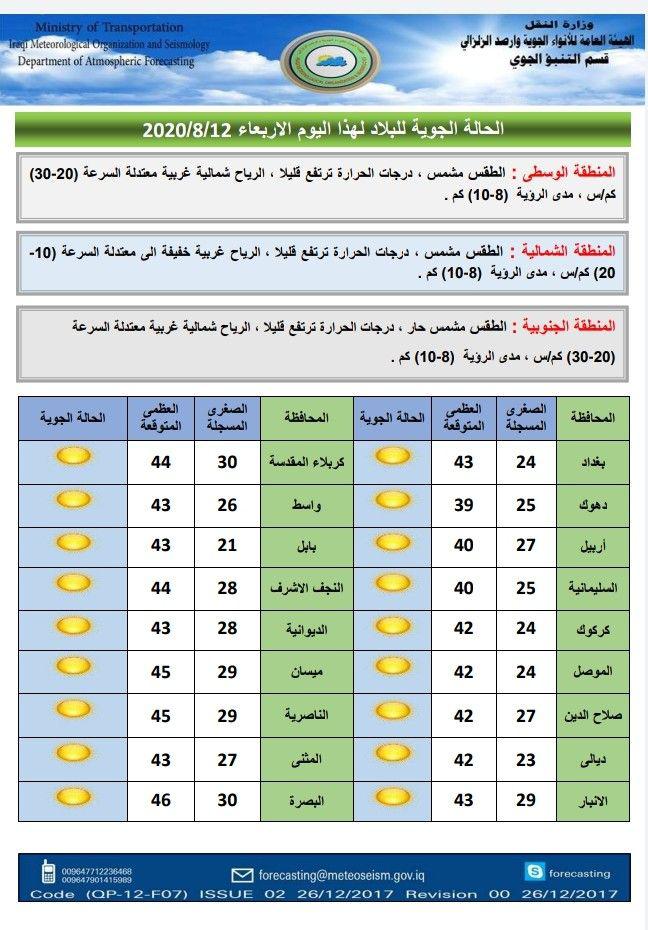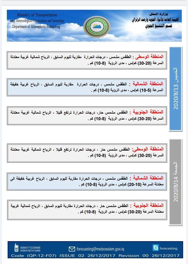 الاخبار العاجلةمحلياتالحالة الجوية ودرجات الحرارة في العراق لليوم الاربعاء والايام المقبلة قبل 5 سنوات 3 مشاهدات شارك الطقس قد يهمك أيضا عربي ودولي خبير عسكري أمريكي يحذر من احتمال مواجهة مباشرة بين روسيا وحلف "الناتو" قبل 7 ساعات 12 مشاهدات أمن الداخلية تعلن تفكيك 176 شبكة دولية للمخدرات وتؤكد نجاح التعاون الإقليمي قبل 8 ساعات 8 مشاهدات محليات الانواء الجوية: العراق يتأثر بمنخفض شبه قطبي يتسبب بأمطار وتدني درجات الحرارة قبل 10 ساعات 25 مشاهدات محليات الكهرباء: الإنتاج الحالي يصل لـ17 ألف ميغاواط قبل 10 ساعات 12 مشاهدات محليات الموارد: خطة لإنشاء 50 سداً لحصاد المياه غالبيتها في نينوى والأنبار قبل 10 ساعات 14 مشاهدات
