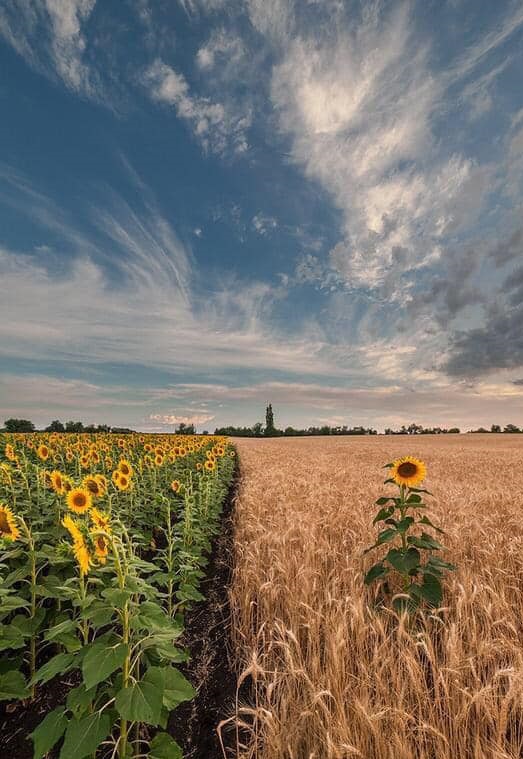 تقف بمفردها في حقل قمح على بعد أقدام قليلة من الآلاف من نظيراتها المماثلة
