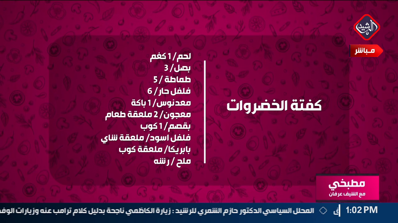 مطبخي مع الشيف عرفانمطبخي مع الشيف عرفان “كفتة الخضروات” قبل 5 سنوات 1 مشاهدة شارك قد يهمك أيضا محليات بالوثيقة.. صدور مذكرة قبض بحق "حسين العنكوشي" بتهمة إهانة رمز ديني بطريقة علنية قبل 3 دقائق أقتصاد العمل تعلن إطلاق راتب المعين المتفرغ لشهر كانون الأول قبل 31 دقيقة 7 مشاهدات عربي ودولي حماس: الاحتلال يعرقل الانتقال للمرحلة الثانية من اتفاق وقف إطلاق النار في غزة قبل 33 دقيقة 4 مشاهدات عربي ودولي وزير الخارجية السوري: العلاقات مع روسيا تدخل مرحلة جديدة قبل 59 دقيقة 5 مشاهدات أمن اعتقال 20 متهماً بالحرق العشوائي في النهروان جنوب شرق بغداد قبل ساعة واحدة 4 مشاهدات