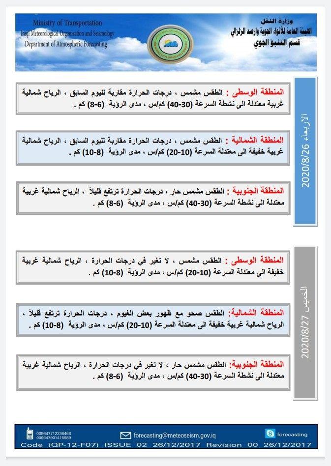 الاخبار العاجلةمحلياتالحالة الجوية ودرجات الحرارة في العراق لليوم الاحد والايام المقبلة قبل 5 سنوات 2 مشاهدات شارك الطقس قد يهمك أيضا سياسة رئيس البرلمان يعلن رفع الجلسة للمداولة مع الكتل السياسية بشأن اختيار النائب الثاني قبل 3 ساعات 6 مشاهدات سياسة البرلمان يقرر اجراء جولة ثالثة لانتخاب النائب الثاني لرئيس مجلس النواب قبل 3 ساعات 13 مشاهدات سياسة بدء عملية العدّ والفرز لانتخاب النائب الثاني لرئيس مجلس النواب قبل 4 ساعات 9 مشاهدات سياسة انتهاء عملية التصويت لانتخاب النائب الثاني لرئيس مجلس النواب قبل 4 ساعات 10 مشاهدات عربي ودولي ترامب: قوة إيران تراجعت بشكل كبير ولا يمكن السماح لها باستعادتها قبل 4 ساعات 7 مشاهدات