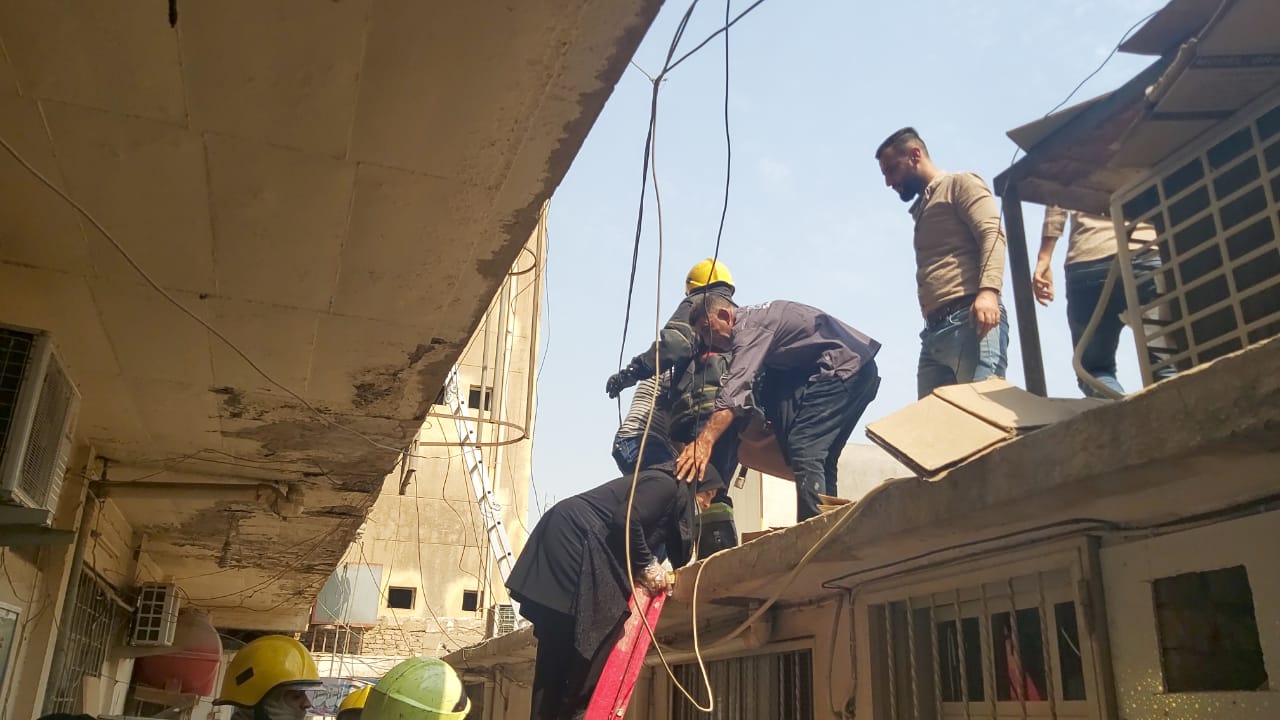 بالصور .. الدفاع المدني ينقذ 20 مواطناً من حادث حريق بناية في الكرادة وسط بغداد