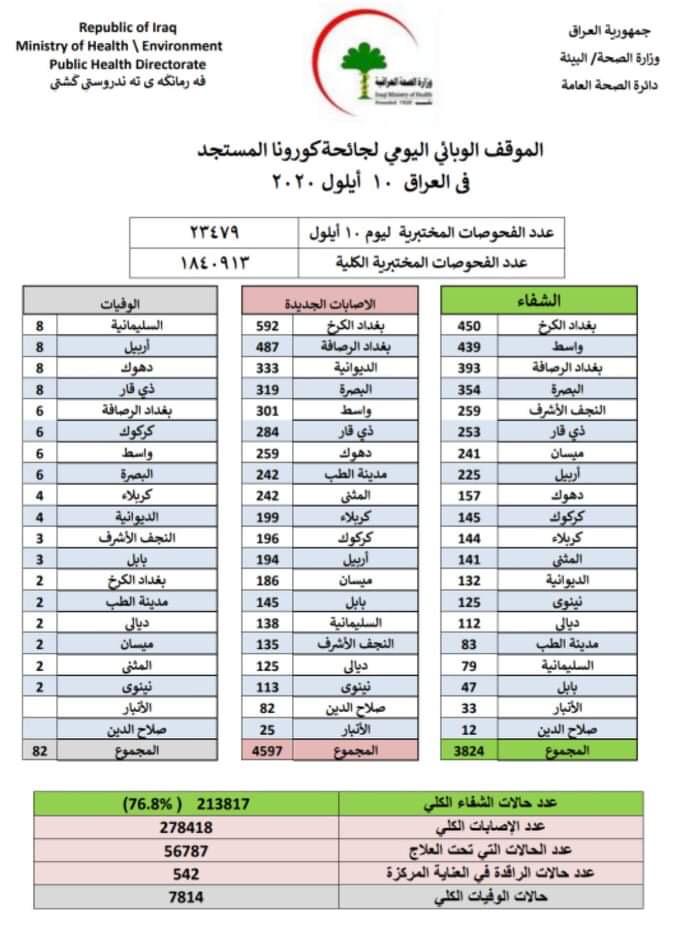 الاخبار العاجلةمحلياتالصحة تعلن تسجيل 4597 اصابة جديدة بكورونا في عموم العراق قبل 5 سنوات 1 مشاهدة شارك قد يهمك أيضا محليات الأنواء: توقعات بهطول أمطار غزيرة الأحد وتحذيرات من حدوث سيول ورياح قبل 7 ساعات 35 مشاهدات عربي ودولي السعودية: نرفض اعتراف إسرائيل بإقليم أرض الصومال كدولة مستقلة قبل 7 ساعات 14 مشاهدات سياسة محمد تميم يحسمها: قلنا ونقولها لا انسحاب ولا انشقاق قبل 7 ساعات 12 مشاهدات عربي ودولي سانا: الجيش السوري يسقط مسيرات معادية أطلقتها قسد باتجاه مواقعه في سد تشرين قبل 8 ساعات 14 مشاهدات عربي ودولي جامعة الدول العربية: الاعتراف الإسرائيلي بإقليم أرض الصومال يمكن أن يخل بالأمن الإقليمي قبل 8 ساعات 10 مشاهدات