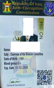 دائرة التحقيقات في الهيئة، وفي معرض حديثها عن عمليَّة الضبط التي تمت بموجب مذكرةٍ قضائيَّةٍ، أفادت بتلقي مديريَّة تحقيق الهيئة في المحافظة معلوماتٍ عن مجموعةٍ تتواجد في ديوان محافظة نينوى تدعي الانتماء إلى”هيئة مكافحة الفساد وإدارة الأزمات”، وأن هذه المجموعة أقدمت على تقديم كتب ووثائق؛ لغرض الحصول على موافقة المحافظ على افتتاح مكتب للهيئة؛ بغية ممارسة أعمالها.
