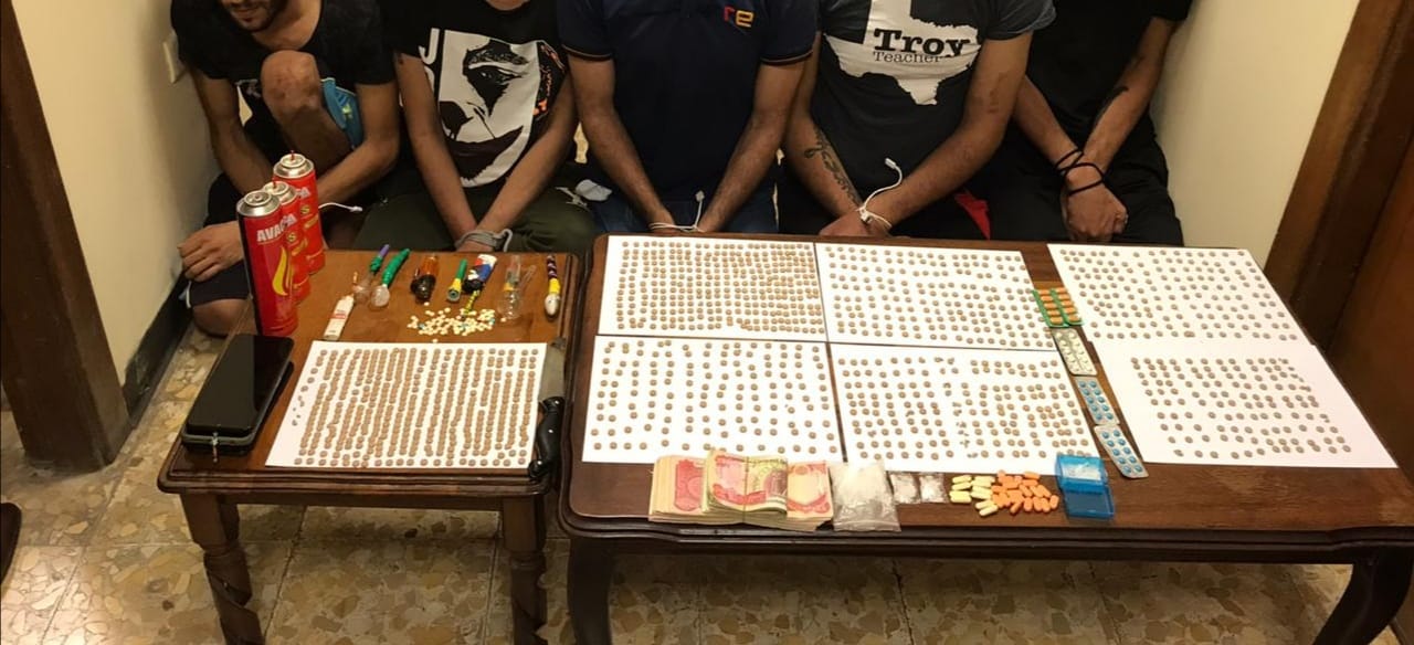 واضافت، انه “تم إلقاء القبض عليهم بالجرم المشهود وبحوزتهم كميات كبيرة من مادة الكرستال والحبوب المخدرة ومواد مختلفة تستخدم للتعاطي”.