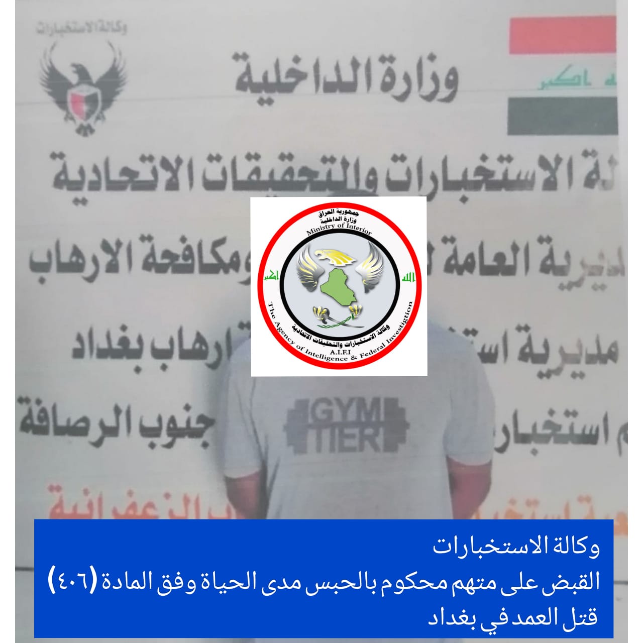 وقالت الوكالة، في بيان تلقته الرشيد، انه “استناداً لمعلومات استخبارية، القت مفارز وكالة الاستخبارات المتمثلة بمديرية استخبارات بغداد في وزارة الداخلية، القبض على أحد المتهمين في منطقة الزعفرانية ببغداد والمحكوم غيابياً بالحبس مدى الحياة وفق أحكام المادة (٤٠٦ قتل عمد)، حسب قرار محكمة جنايات ذي قار”.