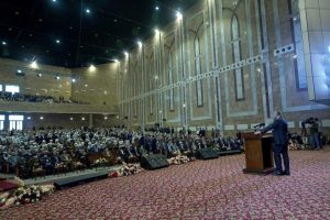 أتشرّف بالمشاركة في هذه الاحتفالية الكريمة، رافعا لشعبنا وأمتنا والإنسانية أسمى التبريكات، بمولد مبعث الهدى ورحمة العالمين ومنار المؤمنين، سيد الخلق رسول الله محمد، صلى الله عليه وعلى آله وأصحابه وسلم.