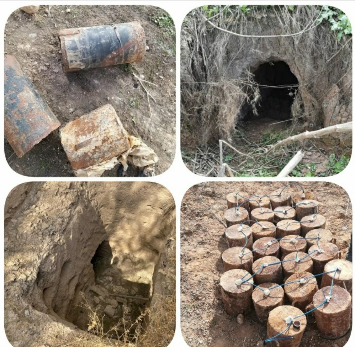 واوضحت، ان “الاوكار تحتوي على مواد لوجستية وملابس، فضلاً عن ضبط (٤٠) عبوة ناسفة و(٤٠) مسطرة في كدس للعتاد لمخلفات داعش الإرهابية”.