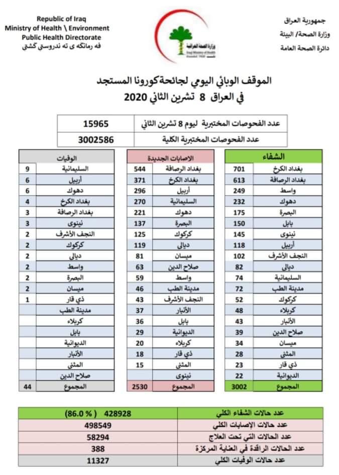 الاخبار العاجلةمحلياتالصحة تعلن تسجيل 44 وفاة بكورونا و 3002 حالة شفاء من الفيروس قبل 5 سنوات 3 مشاهدات شارك قد يهمك أيضا أمن فرق الدفاع المدني تسيطر على حريق التهم مخزن للأخشاب في بغداد قبل 25 دقيقة 5 مشاهدات عربي ودولي لافروف يتحدث عن 3 شروط روسية رئيسية لتسوية النزاع في أوكرانيا قبل 44 دقيقة 5 مشاهدات أقتصاد أسعار النفط تتراجع رغم مخاوف بشأن التوتر بين روسيا وأوكرانيا قبل ساعة واحدة 8 مشاهدات سياسة رئيس البرلمان يعلن رفع الجلسة للمداولة مع الكتل السياسية بشأن اختيار النائب الثاني قبل 8 ساعات 11 مشاهدات سياسة البرلمان يقرر اجراء جولة ثالثة لانتخاب النائب الثاني لرئيس مجلس النواب قبل 8 ساعات 16 مشاهدات
