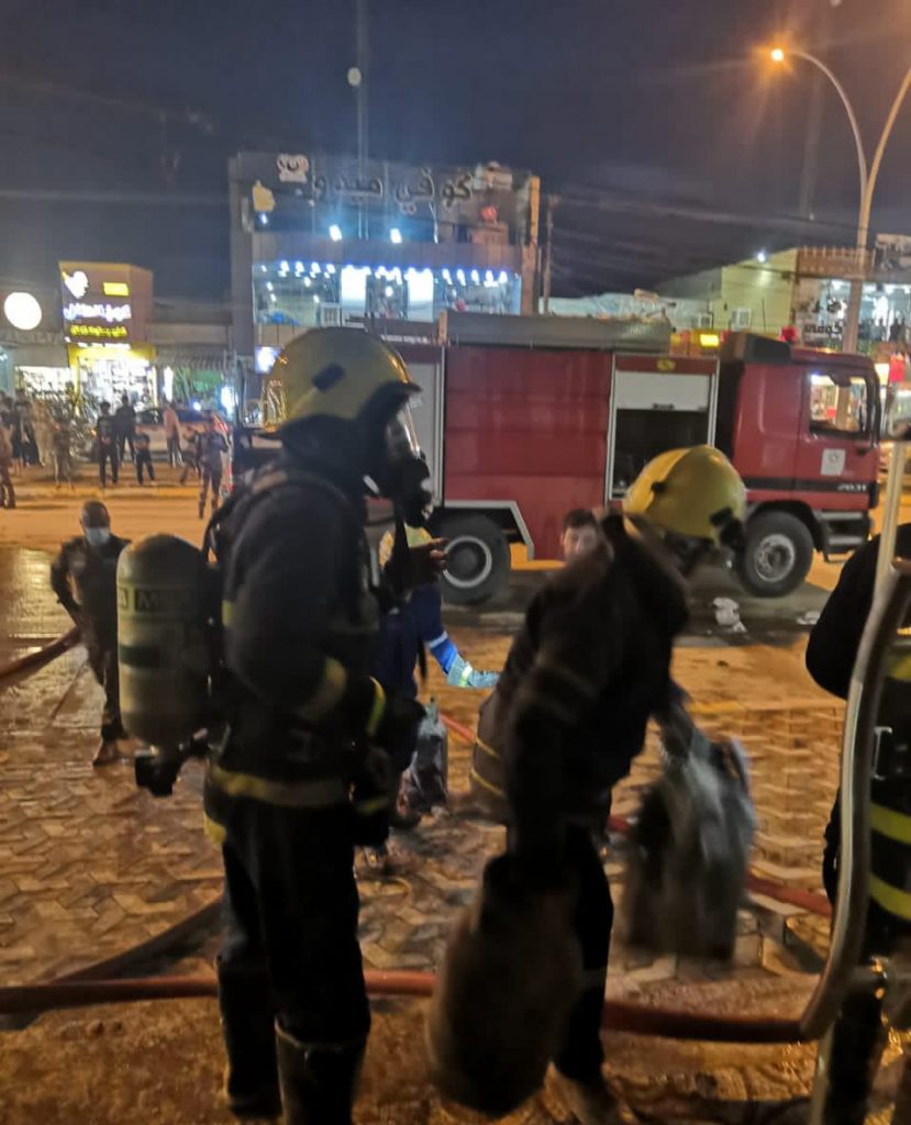 بالصور .. الدفاع المدني ينقذ 5 عمال سوريين من حريق مطعم في الفلوجة