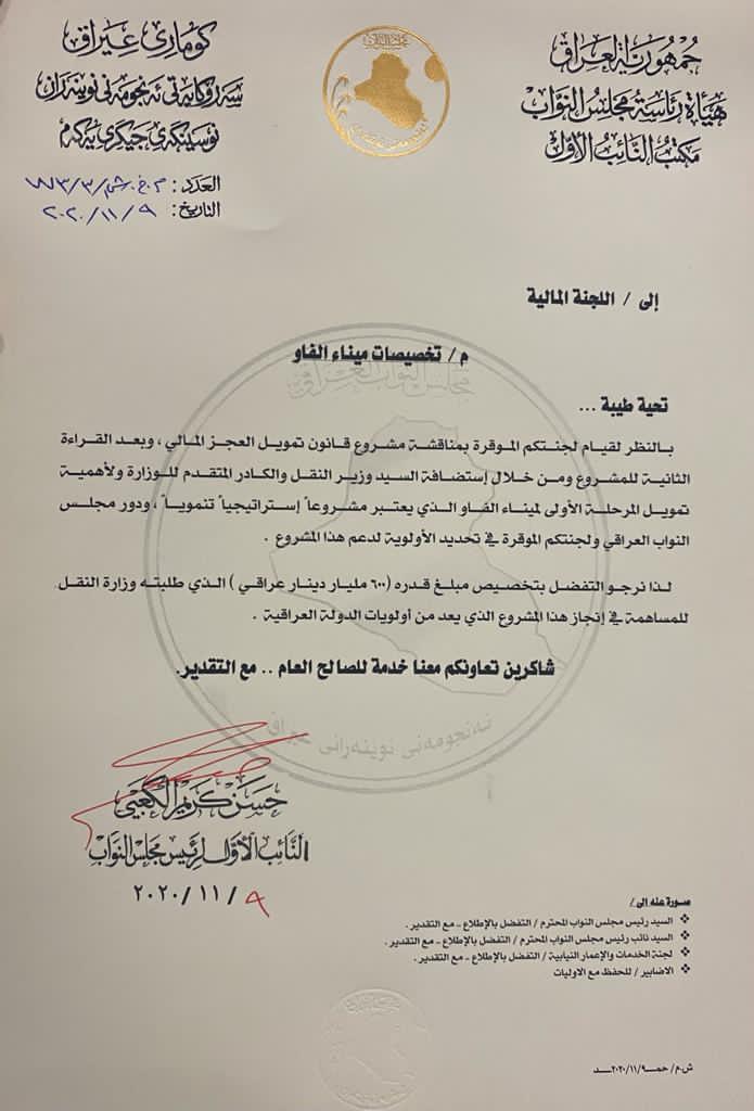 الاخبار العاجلةمحلياتبالوثيقة .. الكعبي يدعو لتضمين 600 مليار دينار في قانون العجز المالي لتمويل المرحلة الاولى لميناء الفاو قبل 5 سنوات 3 مشاهدات شارك قد يهمك أيضا سياسة رئيس البرلمان يعلن رفع الجلسة للمداولة مع الكتل السياسية بشأن اختيار النائب الثاني قبل 55 دقيقة 6 مشاهدات سياسة البرلمان يقرر اجراء جولة ثالثة لانتخاب النائب الثاني لرئيس مجلس النواب قبل ساعة واحدة 11 مشاهدات سياسة بدء عملية العدّ والفرز لانتخاب النائب الثاني لرئيس مجلس النواب قبل ساعتين 8 مشاهدات سياسة انتهاء عملية التصويت لانتخاب النائب الثاني لرئيس مجلس النواب قبل ساعتين 10 مشاهدات عربي ودولي ترامب: قوة إيران تراجعت بشكل كبير ولا يمكن السماح لها باستعادتها قبل ساعتين 7 مشاهدات