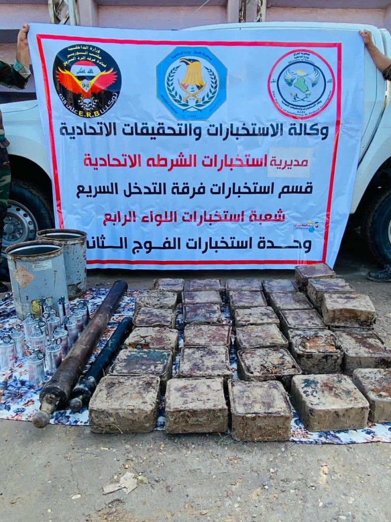 واوضحت، ان “الكدس أحتوى على هاون عيار (٦٠) واخر عيار (٣٢) و (٣٢ )صاعق هاون و (٢٢)رمانة دفاعية”.