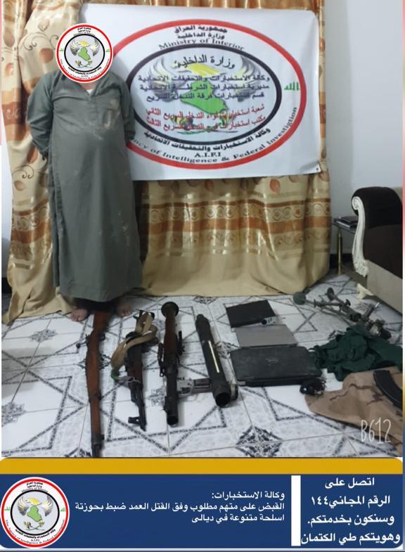 وكالة الاستخبارات تعلن القبض على متهم بالقتل العمد وتضبط بحوزته اسلحة في ديالى