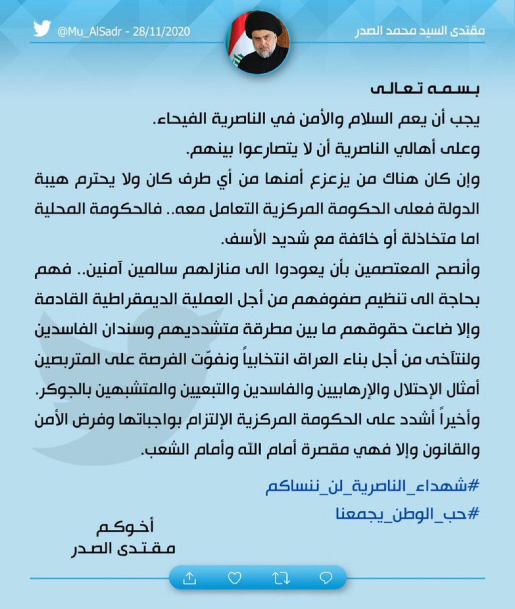 الاخبار العاجلةمحلياتالصدر: يجب ان يعم السلام والامن في الناصرية وعلى اهلها ان لا يتصارعوا بينهم قبل 5 سنوات 9 مشاهدات شارك قد يهمك أيضا محليات الأنواء: توقعات بهطول أمطار غزيرة الأحد وتحذيرات من حدوث سيول ورياح قبل 8 ساعات 35 مشاهدات عربي ودولي السعودية: نرفض اعتراف إسرائيل بإقليم أرض الصومال كدولة مستقلة قبل 8 ساعات 14 مشاهدات سياسة محمد تميم يحسمها: قلنا ونقولها لا انسحاب ولا انشقاق قبل 9 ساعات 12 مشاهدات عربي ودولي سانا: الجيش السوري يسقط مسيرات معادية أطلقتها قسد باتجاه مواقعه في سد تشرين قبل 9 ساعات 15 مشاهدات عربي ودولي جامعة الدول العربية: الاعتراف الإسرائيلي بإقليم أرض الصومال يمكن أن يخل بالأمن الإقليمي قبل 9 ساعات 10 مشاهدات