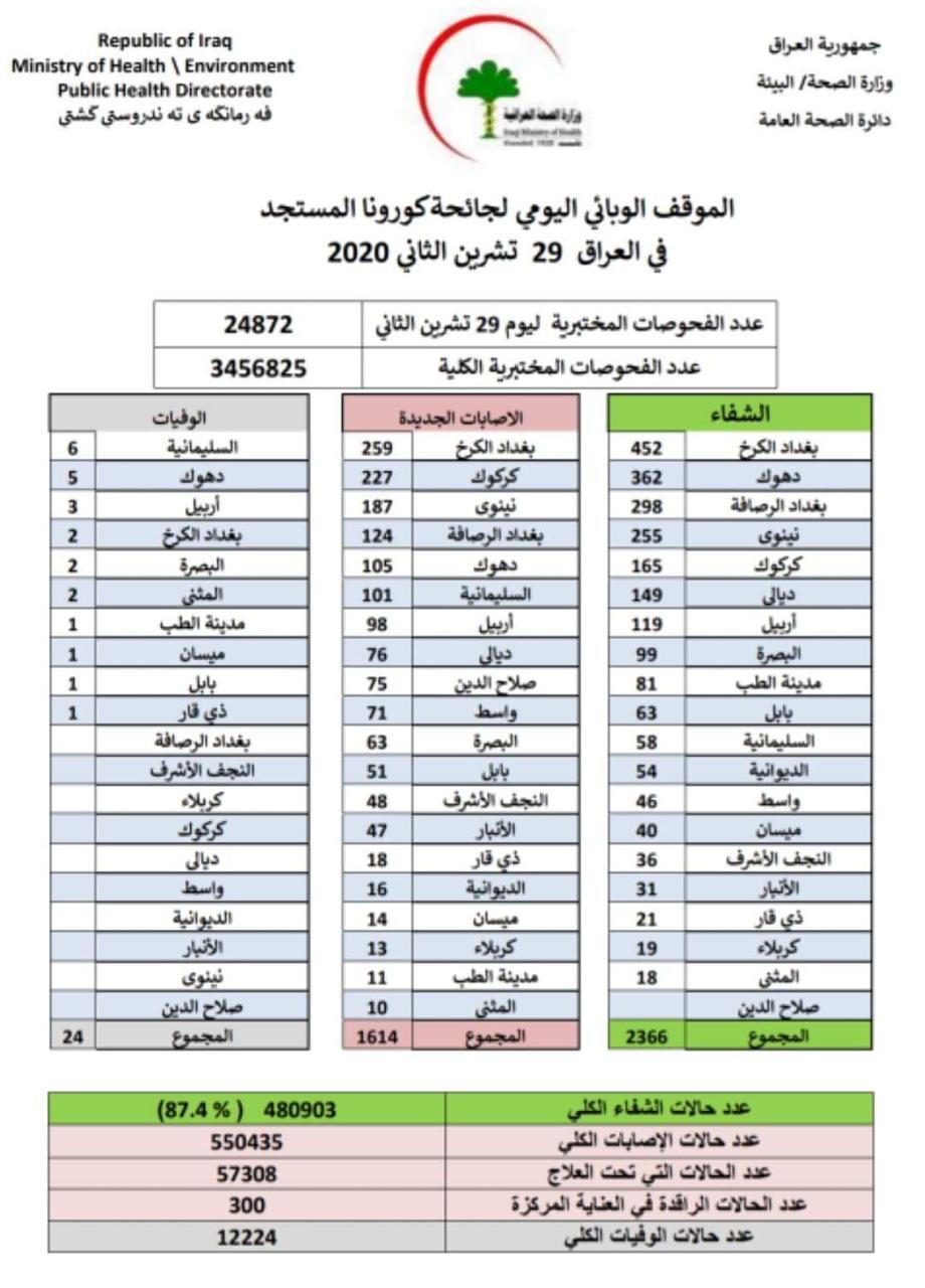 الاخبار العاجلةمحلياتالصحة تعلن تسجيل 1614 اصابة جديدة بفيروس كورونا في عموم العراق قبل 5 سنوات شارك قد يهمك أيضا محليات الأنواء: توقعات بهطول أمطار غزيرة الأحد وتحذيرات من حدوث سيول ورياح قبل 4 ساعات 28 مشاهدات عربي ودولي السعودية: نرفض اعتراف إسرائيل بإقليم أرض الصومال كدولة مستقلة قبل 4 ساعات 14 مشاهدات سياسة محمد تميم يحسمها: قلنا ونقولها لا انسحاب ولا انشقاق قبل 5 ساعات 9 مشاهدات عربي ودولي سانا: الجيش السوري يسقط مسيرات معادية أطلقتها قسد باتجاه مواقعه في سد تشرين قبل 5 ساعات 14 مشاهدات عربي ودولي جامعة الدول العربية: الاعتراف الإسرائيلي بإقليم أرض الصومال يمكن أن يخل بالأمن الإقليمي قبل 5 ساعات 10 مشاهدات