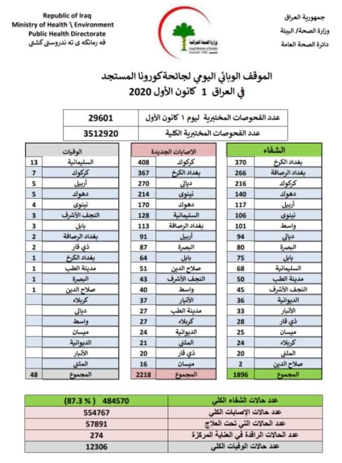 الاخبار العاجلةمحلياتالصحة تعلن تسجيل 48 وفاة بكورونا و 1896 حالة شفاء من الفيروس قبل 5 سنوات 1 مشاهدة شارك ح قد يهمك أيضا عربي ودولي عمليات طعن في مترو باريس والشرطة تعتقل المشتبه به قبل 4 دقائق 1 مشاهدة سياسة السيد الصدر: سوريا الحبيبة لجميع الطوائف وننصح حكومتها بكبح جماح التشدد الطائفي فوراً قبل 39 دقيقة 7 مشاهدات سياسة السيد الصدر بشأن انفجار مسجد بحمص: إعلان لبدء الحرب الطائفية التي أكتوى بها عراقنا الحبيب قبل 40 دقيقة 5 مشاهدات عربي ودولي مجلس التعاون الخليجي: إعلان إسرائيل الاعتراف بـ"أرض الصومال" انتهاك صريح لسيادة الصومال قبل ساعة واحدة 8 مشاهدات عربي ودولي زيلنسكي: مستعد لطرح خطة ترامب على استفتاء شعبي إذا وافقت روسيا على وقف إطلاق النار قبل ساعتين 6 مشاهدات