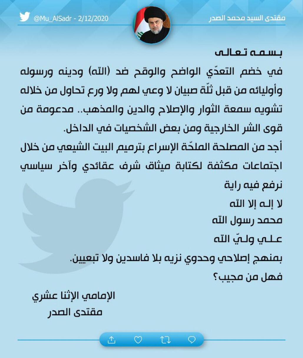 محلياتالصدر يدعو الى كتابة ميثاق شرف عقائدي وسياسي لترميم البيت الشيعي قبل 5 سنوات 2 مشاهدات شارك Image processed by CodeCarvings Piczard ### FREE Community Edition ### on 2017-04-17 13:10:37Z | | قد يهمك أيضا رياضة برشلونة يراقب مهاجماً صاعداً في كأس إفريقيا لتعويض رحيل ليفاندوفسكي قبل 15 دقيقة 2 مشاهدات محليات العراق يطلق حملة لمصادرة الطيور والحيوانات المهددة بالانقراض في سوق الغزل قبل 59 دقيقة 7 مشاهدات محليات منظمة الصحة العالمية تدق ناقوس الخطر بشأن فيروس كورونا "ميرس" قبل ساعة واحدة 8 مشاهدات عربي ودولي مقتل إسرائيليين وإصابة 6 آخرين قرب العفولة في عملية طعن ودهس قبل ساعة واحدة 9 مشاهدات عربي ودولي ارتفاع حصيلة انفجار المسجد في حمص إلى 5 قتلى و21 مصاباً قبل ساعتين 7 مشاهدات