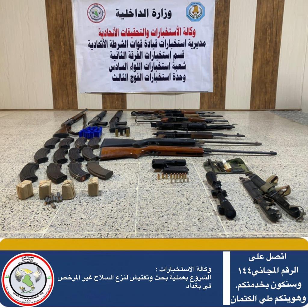 اعلنت وكالة الاستخبارات، اليوم الاربعاء، الشروع بعملية بحث وتفتيش لنزع السلاح غير المرخص في بغداد.