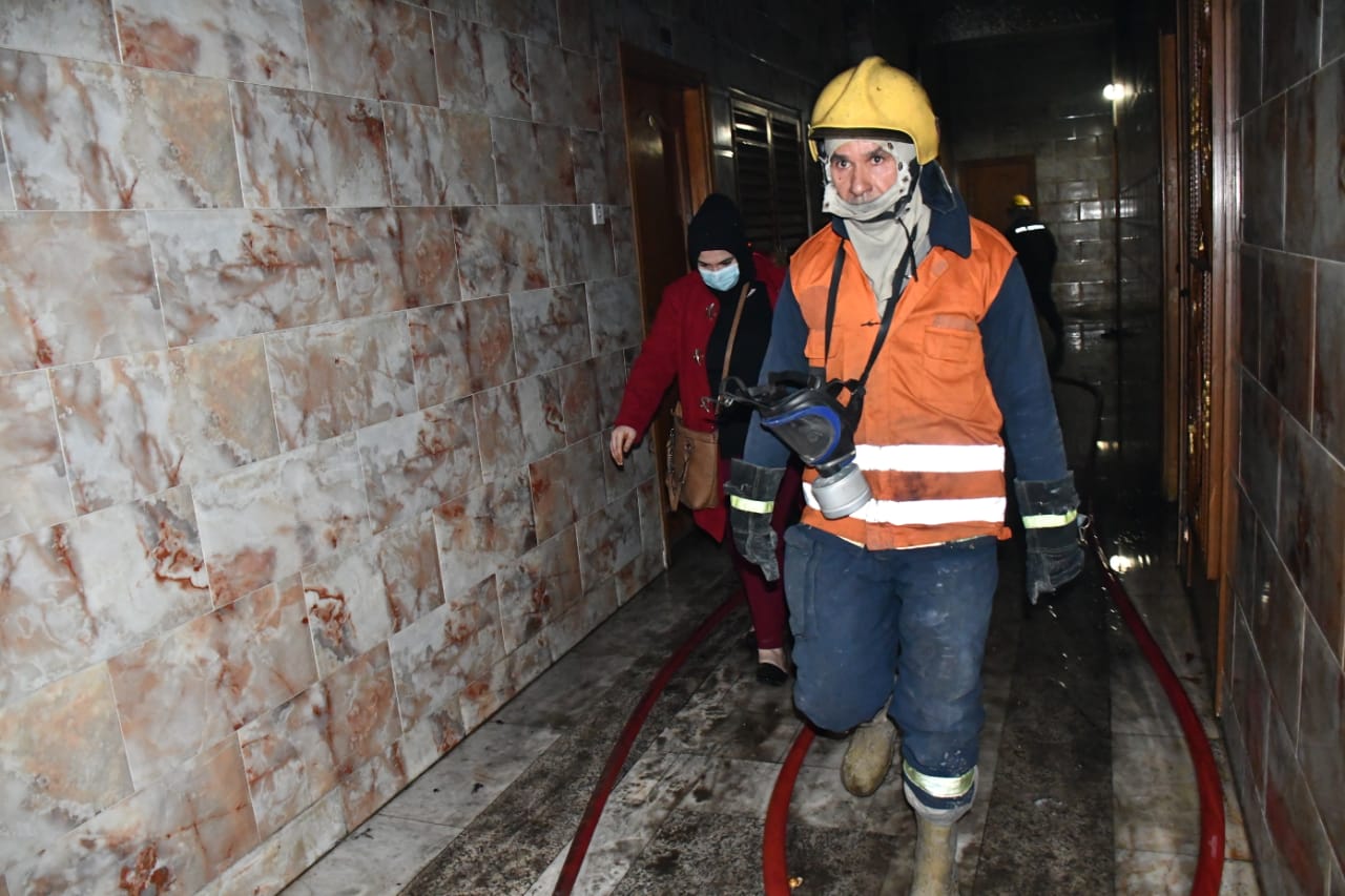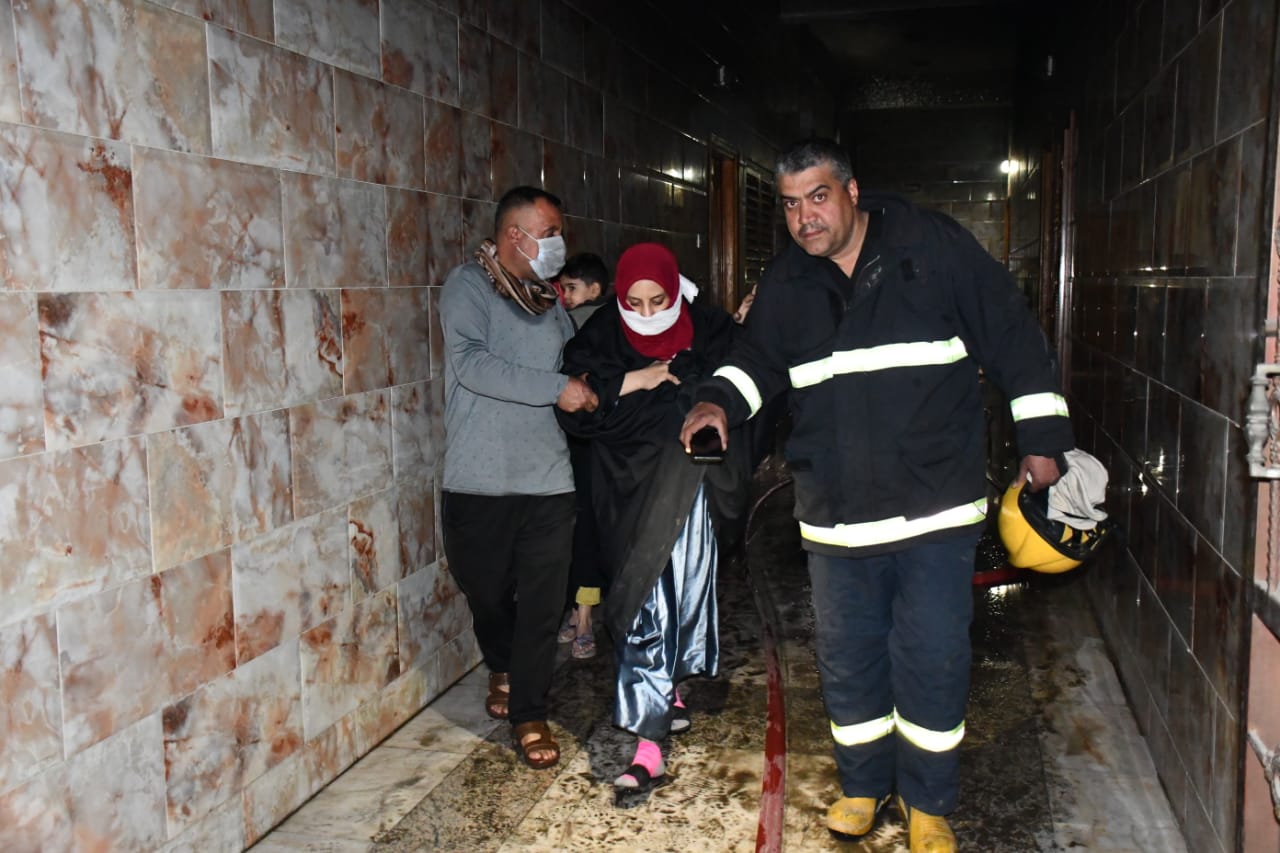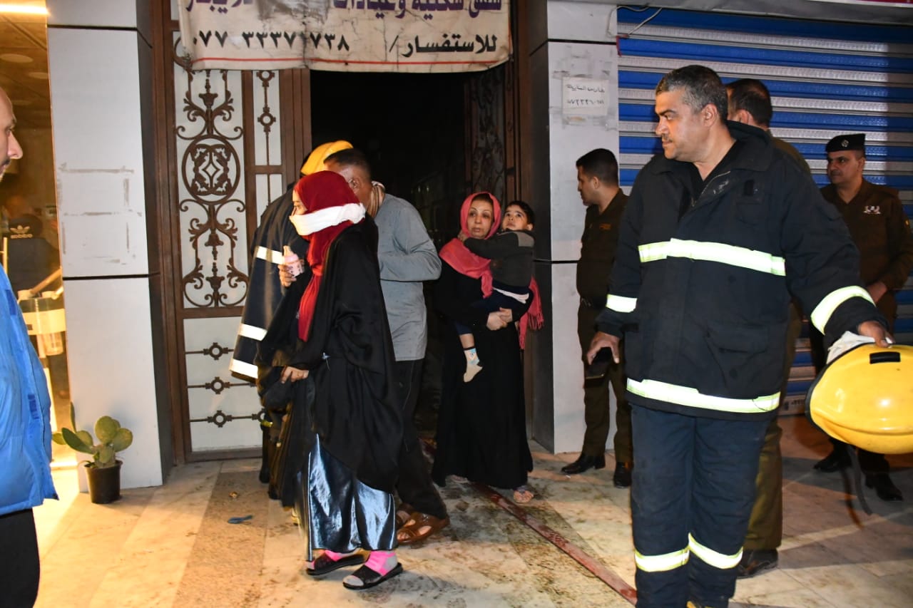 واضافت، ان عجلات الأطفاء والانقاذ والإسعاف التابعة الى الدفاع المدني بأشراف مباشر من المدير العام اللواء كاظم سلمان بوهان، هرعت الى موقع الحادث بغضون دقائق معدودة وباشرت بعمليات انزال العوائل وبدأت بالأطفال والنساء الذين احتجزتهم النيران والأدخنة المنبعثة من الحريق أعلى سطح البناية”.