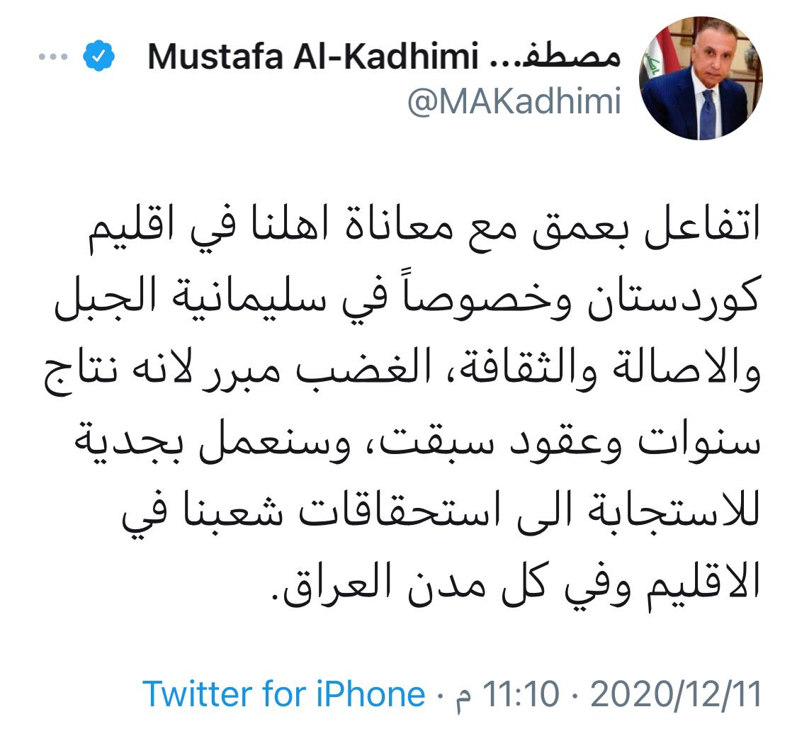 محلياتالكاظمي: سنعمل بجدية للاستجابة الى استحقاقات شعبنا في الاقليم وكل مدن العراق قبل 5 سنوات 2 مشاهدات شارك قد يهمك أيضا عربي ودولي الداخلية السورية: اعتقال زعيم تنظيم داعش بدمشق في عملية أمنية بالتعاون مع التحالف الدولي قبل 22 دقيقة 6 مشاهدات سياسة السيد الصدر: لا مكان للتطبيع ولا لشرعنته في العراق قبل 44 دقيقة 6 مشاهدات عربي ودولي الحرس الثوري الإيراني يوقف سفينة محملة بـ4 ملايين لتر من الوقود المهرب في مياه الخليج قبل ساعة واحدة 8 مشاهدات عربي ودولي الجيش الأردني يشن غارات استهدفت شبكات تهريب ومزارع مخدرات بريف السويداء قبل ساعتين 4 مشاهدات محليات الرئيس الحلبوسي يهنئ المسيحيين بمناسبة اعياد الميلاد وحلول رأس السنة الميلادية قبل ساعتين 10 مشاهدات