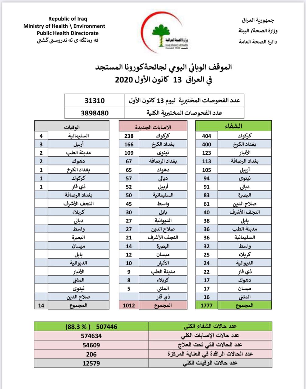 الاخبار العاجلةمحلياتالصحة تعلن تسجيل 14 وفاة بكورونا و 1777 حالة شفاء من الفيروس قبل 5 سنوات 4 مشاهدات شارك قد يهمك أيضا سياسة القاضي فائق زيدان: استقلال القضاء هو حجر الزاوية في أي نظام ديمقراطي حقيقي قبل 41 دقيقة 5 مشاهدات سياسة رئيس مجلس القضاء: محكمة التمييز تمثل قمة الهرم القضائي ورمزاً للاستقرار القانوني في العراق قبل 42 دقيقة 5 مشاهدات أمن عمليات بغداد تعيد فتح طريق مغلق بمنطقة العرصات وسط العاصمة قبل ساعة واحدة 6 مشاهدات محليات الداخلية: إيقاف العمل في مديرية الأحوال المدنية والجوازات والإقامة حتى 4 كانون الثاني 2026 قبل ساعتين 11 مشاهدات أقتصاد ارتفاع أسعار صرف الدولار مقابل الدينار العراقي مع الاغلاق قبل 3 ساعات 15 مشاهدات