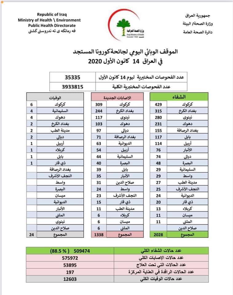 محلياتالصحة تعلن تسجيل 24 وفاة بكورونا و 2028 حالة شفاء من الفيروس قبل 5 سنوات 1 مشاهدة شارك قد يهمك أيضا أقتصاد العمل تعلن إطلاق راتب المعين المتفرغ لشهر كانون الأول قبل 7 دقائق 2 مشاهدات عربي ودولي حماس: الاحتلال يعرقل الانتقال للمرحلة الثانية من اتفاق وقف إطلاق النار في غزة قبل 9 دقائق 3 مشاهدات عربي ودولي وزير الخارجية السوري: العلاقات مع روسيا تدخل مرحلة جديدة قبل 36 دقيقة 4 مشاهدات أمن اعتقال 20 متهماً بالحرق العشوائي في النهروان جنوب شرق بغداد قبل 56 دقيقة 3 مشاهدات عربي ودولي وسائل إعلام تركية: طاقم طائرة رئيس الأركان الليبي يحمل الجنسية الفرنسية قبل ساعة واحدة 6 مشاهدات