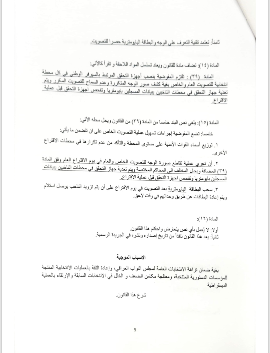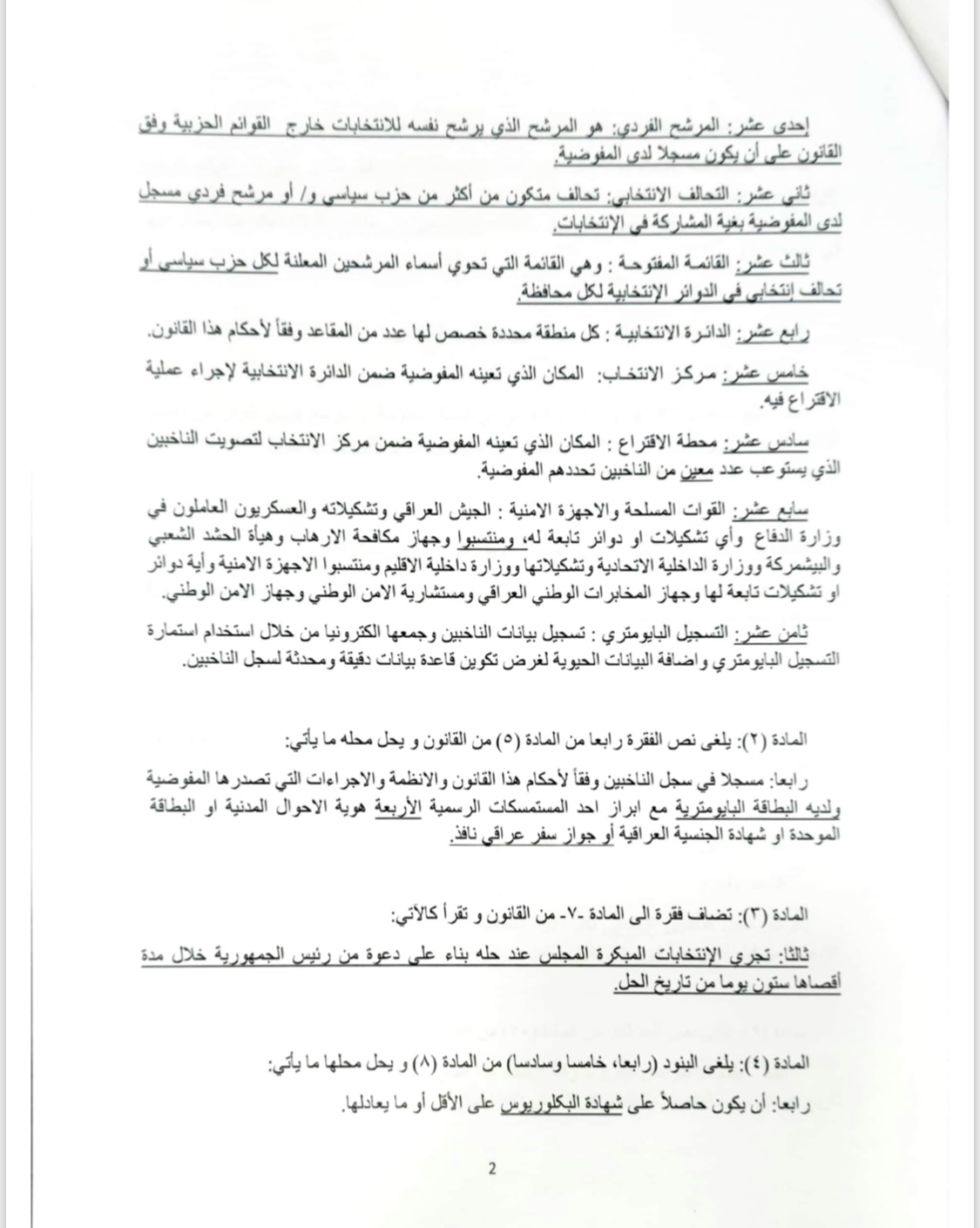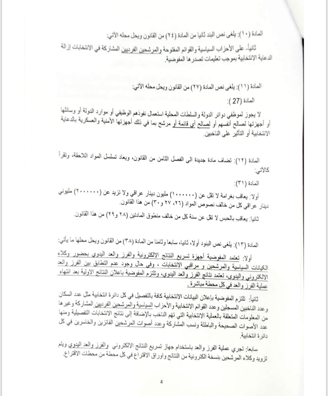 سياسةبالوثائق .. تقديم مقترح نيابي موقع من 75 نائباً لتعديل قانون الانتخابات البرلمانية قبل 5 سنوات 17 مشاهدات شارك اقرأ ايضا السوداني ووفد الديمقراطي يؤكدان أهمية الإسراع بإنجاز الاستحقاقات الدستورية "الرشيد" تنشر نص قرارات مجلس الوزراء في جلسة اليوم روسيا تعلن استعدادها للتعاون مع الحكومة العراقية المقبلة الكهرباء: خسارة المنظومة الكهربائية ما بين 4000 إلى 4500 ميغاواط قد يهمك أيضا سياسة السوداني ووفد الديمقراطي يؤكدان أهمية الإسراع بإنجاز الاستحقاقات الدستورية قبل 42 دقيقة 3 مشاهدات محليات الأنواء الجوية: ضباب كثيف وانعدام الرؤية فجر وصباح غدٍ الأربعاء في الوسط والجنوب قبل 46 دقيقة 2 مشاهدات سياسة "الرشيد" تنشر نص قرارات مجلس الوزراء في جلسة اليوم قبل ساعتين 12 مشاهدات سياسة روسيا تعلن استعدادها للتعاون مع الحكومة العراقية المقبلة قبل ساعتين 5 مشاهدات أقتصاد الصناعة: تحقيق الاكتفاء الذاتي من غازي النيتروجين والأوكسجين وفرض رسوم على المستورد قبل 3 ساعات 11 مشاهدات