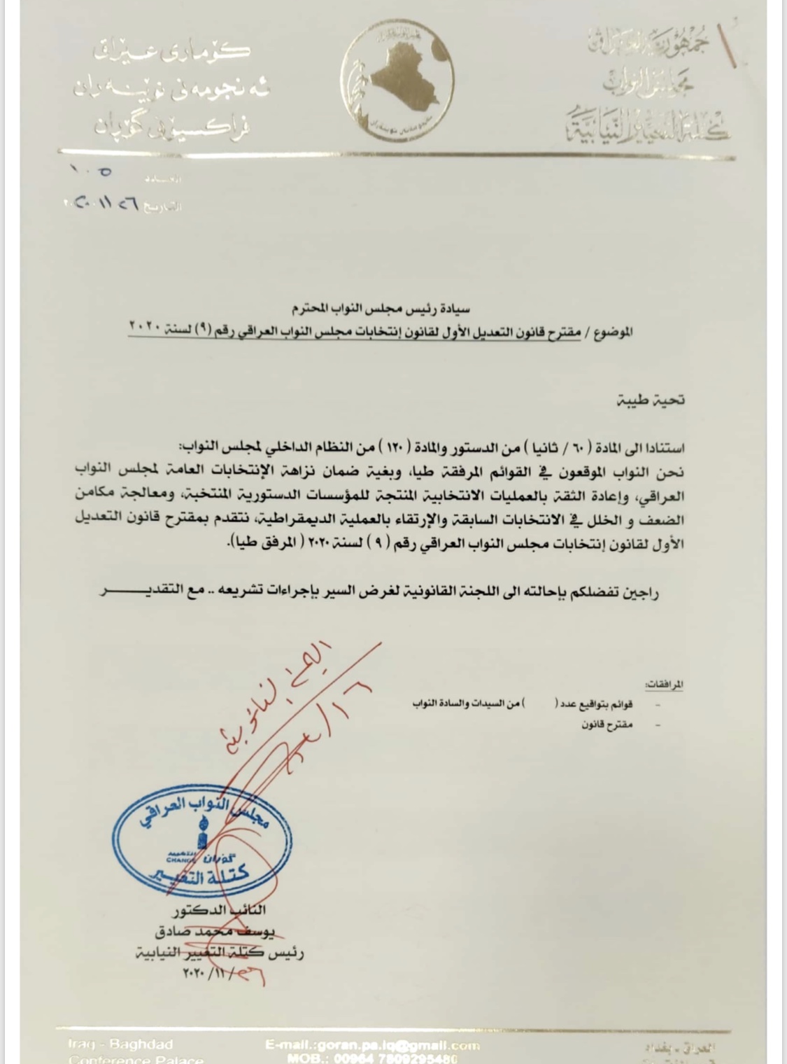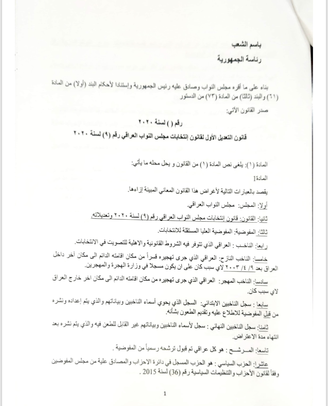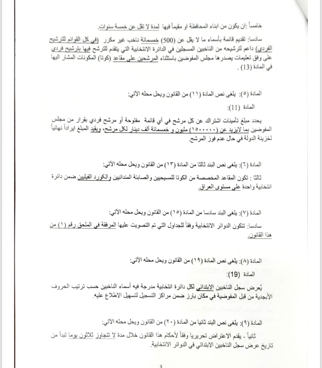 سياسةبالوثائق .. تقديم مقترح نيابي موقع من 75 نائباً لتعديل قانون الانتخابات البرلمانية قبل 5 سنوات 17 مشاهدات شارك اقرأ ايضا السوداني ووفد الديمقراطي يؤكدان أهمية الإسراع بإنجاز الاستحقاقات الدستورية "الرشيد" تنشر نص قرارات مجلس الوزراء في جلسة اليوم روسيا تعلن استعدادها للتعاون مع الحكومة العراقية المقبلة الكهرباء: خسارة المنظومة الكهربائية ما بين 4000 إلى 4500 ميغاواط قد يهمك أيضا سياسة السوداني ووفد الديمقراطي يؤكدان أهمية الإسراع بإنجاز الاستحقاقات الدستورية قبل 42 دقيقة 3 مشاهدات محليات الأنواء الجوية: ضباب كثيف وانعدام الرؤية فجر وصباح غدٍ الأربعاء في الوسط والجنوب قبل 46 دقيقة 2 مشاهدات سياسة "الرشيد" تنشر نص قرارات مجلس الوزراء في جلسة اليوم قبل ساعتين 12 مشاهدات سياسة روسيا تعلن استعدادها للتعاون مع الحكومة العراقية المقبلة قبل ساعتين 5 مشاهدات أقتصاد الصناعة: تحقيق الاكتفاء الذاتي من غازي النيتروجين والأوكسجين وفرض رسوم على المستورد قبل 3 ساعات 11 مشاهدات