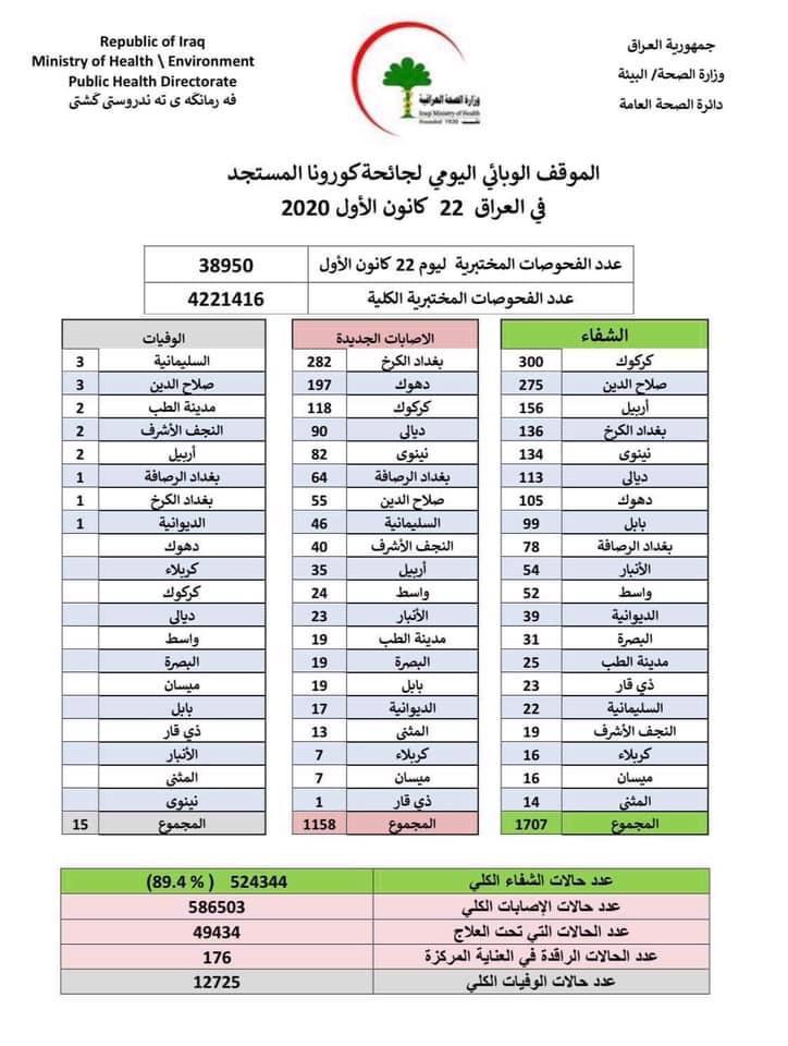 الاخبار العاجلةمحلياتالصحة تعلن تسجيل 1158 اصابة جديدة بفيروس كورونا في عموم العراق قبل 5 سنوات 1 مشاهدة شارك قد يهمك أيضا أقتصاد السيد الصدر: العرب والكرد إخوة ولا ينبغي تأجيج النعرات العرقية بل ويجب معاقبة فاعلها قانونياً قبل 50 ثانية عربي ودولي الخارجية الإيرانية: برنامجنا الصاروخي ليس مطروحا للتفاوض قبل 17 دقيقة 3 مشاهدات محليات التعليم تؤكد العمل بتعليمات الإجازة الدراسية قبل 23 دقيقة 4 مشاهدات أمن وزير الداخلية يعلن التعاقد لتوريد رادارات حديثة وقرب انجاز الاشارات الذكية في بغداد قبل 51 دقيقة 8 مشاهدات محليات نقيب أطباء أسنان العراق يدعو إلى تعيين خريجي كليات طب الأسنان ويؤكد ضرورة زيادة معدل القبول بالكليات الاهلية قبل ساعتين 6 مشاهدات