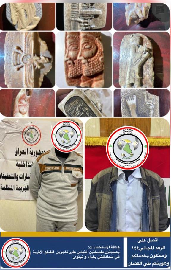 واشارت الوكالة، الى انه “جرى تسليم المتهمين مع القطع الاثرية الى الجهات المختصة بموجب وصل استلام اصولي”.