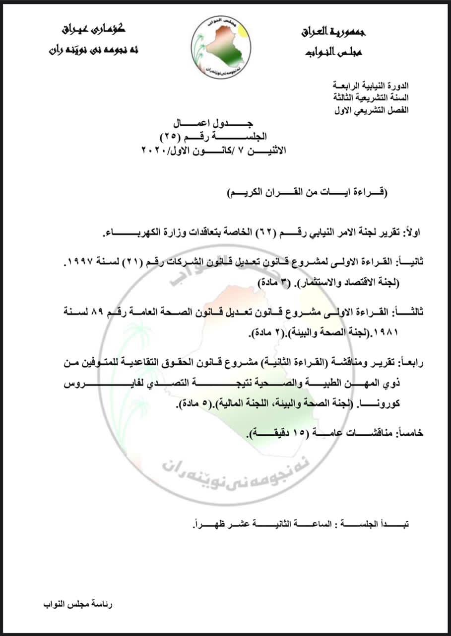 البرلمان ينشر جدول اعمال جلسة غد الاثنين