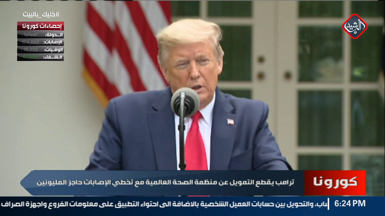 ترامب يقطع التمويل عن منظمة الصحة العالمية مع تخطي الإصابات حاجز المليونين