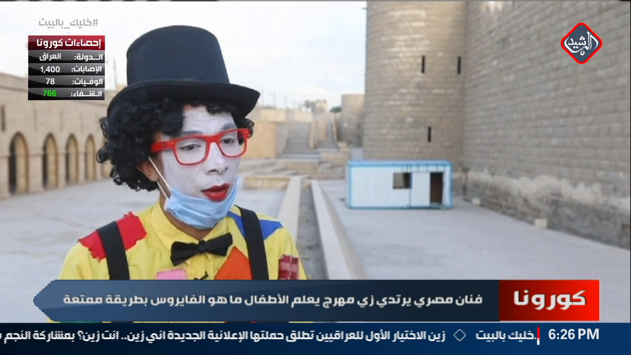 فنان مصري يرتدي زي مهرج يعلم الأطفال ما هو الفايروس بطريقة ممتعة