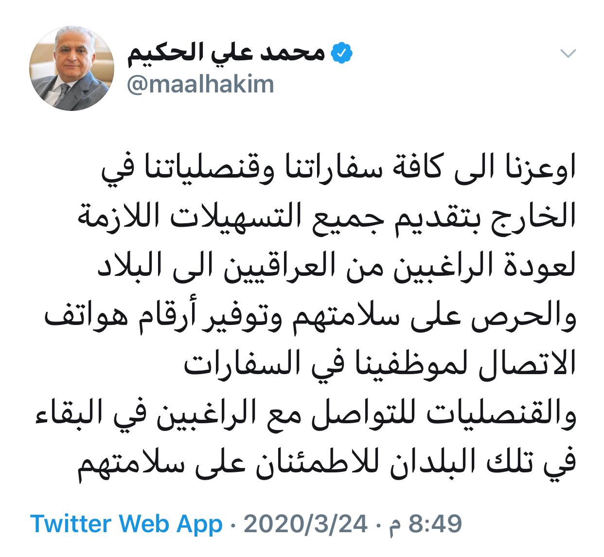 وزير الخارجية: اوعزنا لسفاراتنا بتقديم التسهيلات اللازمة لعودة الراغبين من العراقيين الى البلاد