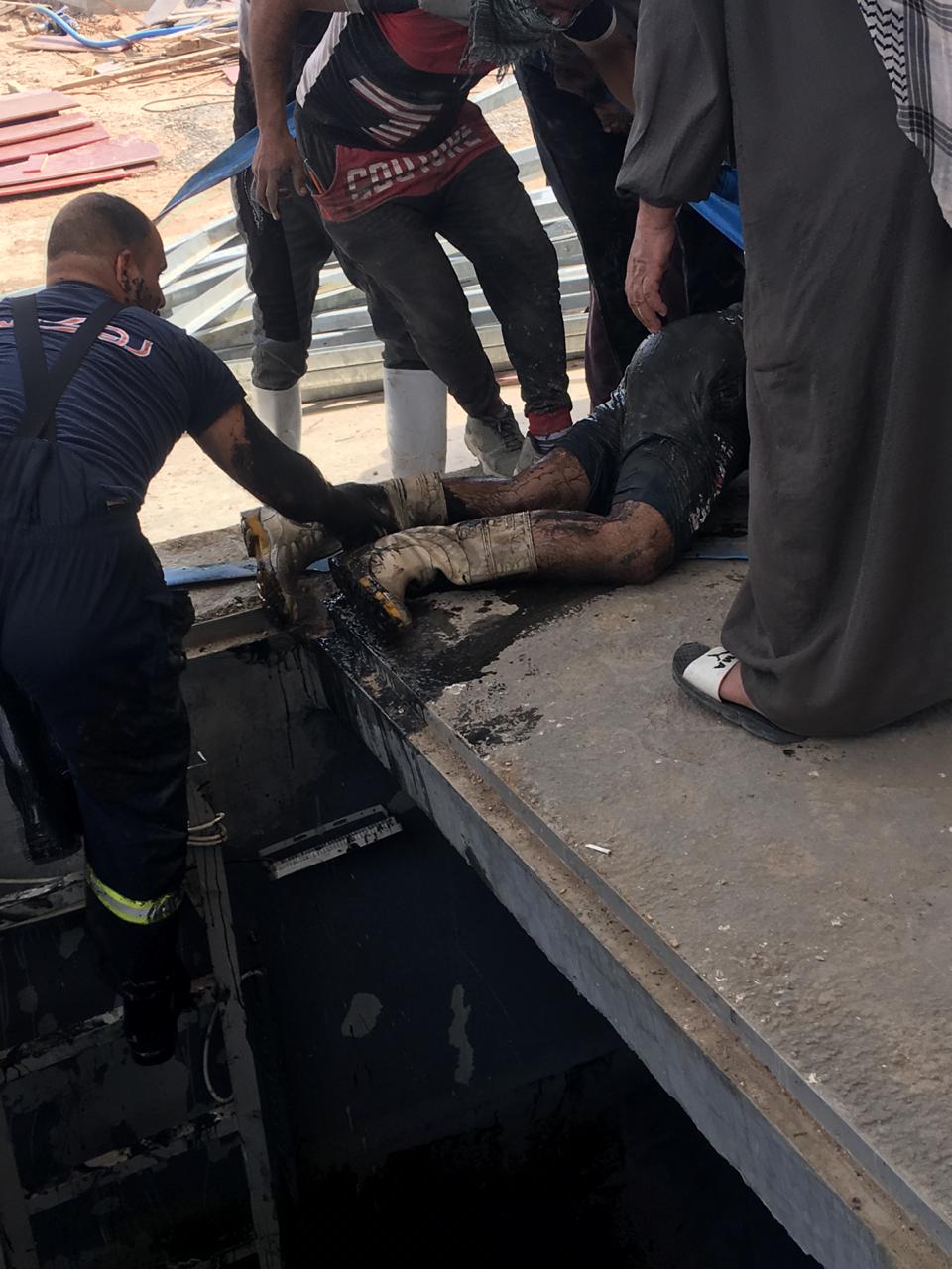 بالصور .. الدفاع المدني ينقذ شخصاً سقط بمنهول للصرف الصحي في كربلاء