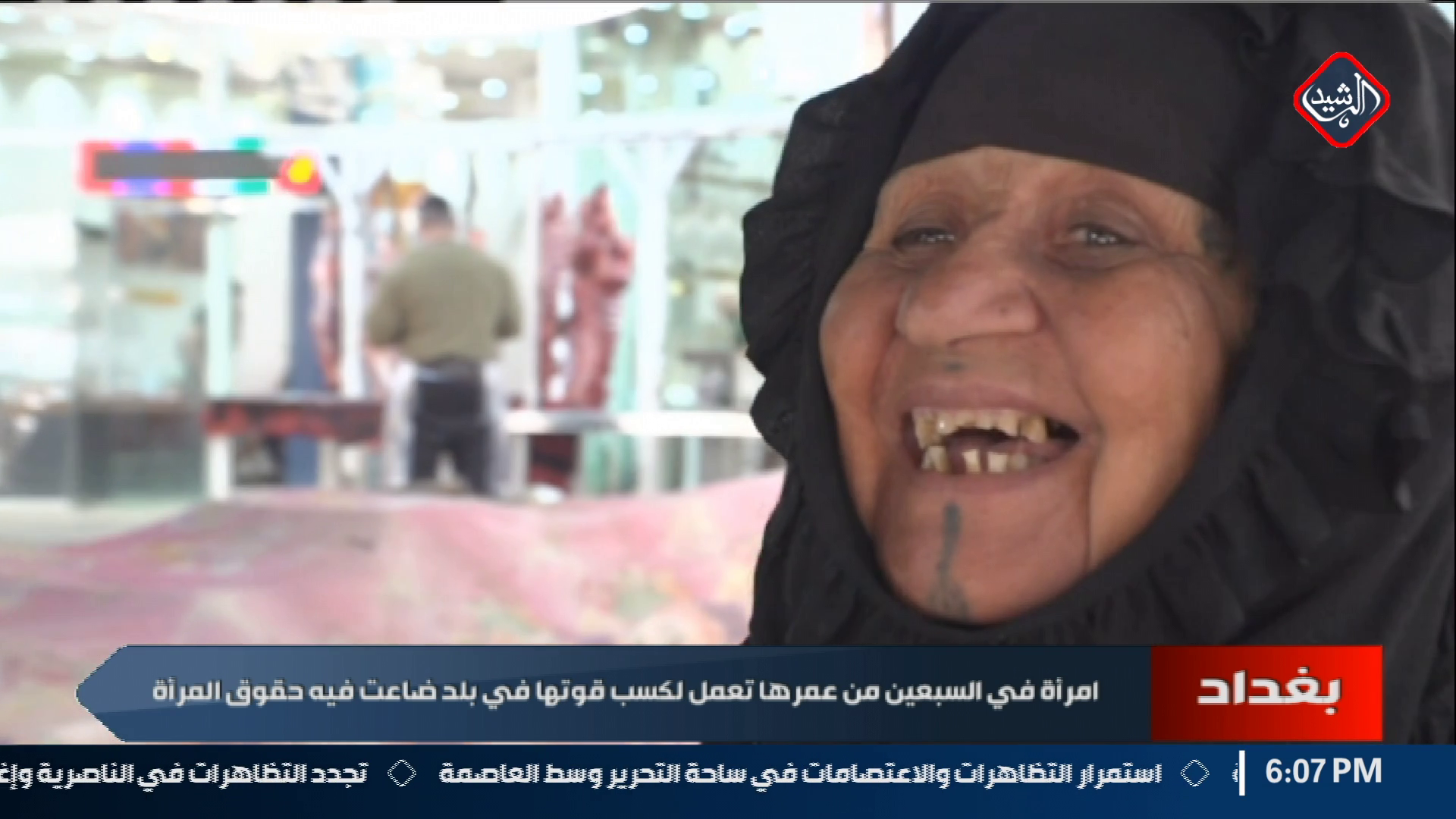 امرأة في السبعين من عمرها تعمل لكسب قوتها في بلد ضاعت فيه حقوق المرأة