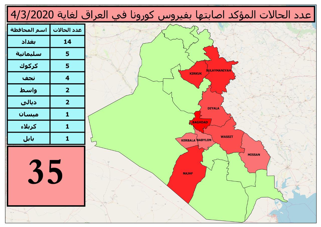 بالأرقام .. عدد الاصابات بفيروس كورونا في بغداد والمحافظات