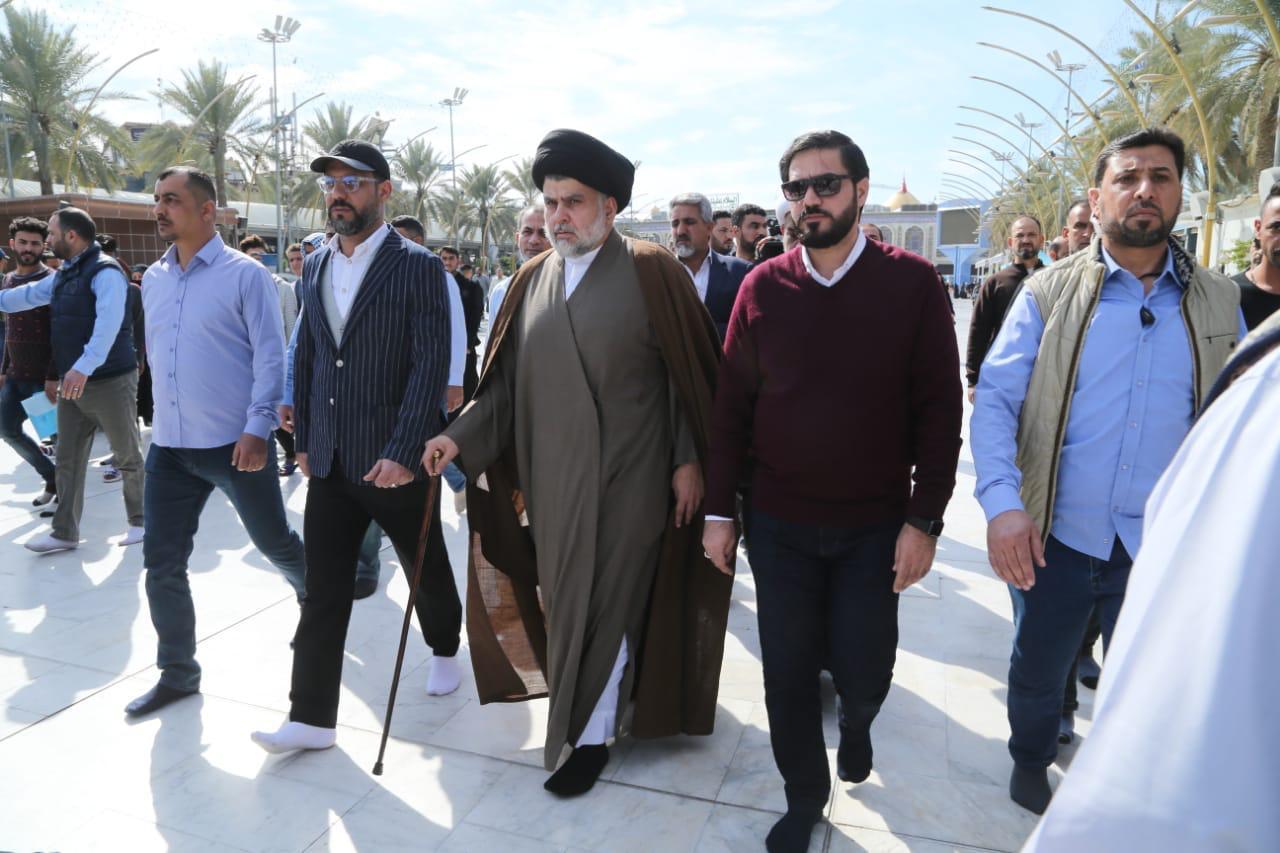 بالصور .. الصدر يزور مرقدي الامام الحسين وأخيه أبي الفضل العباس عليهما السلام في كربلاء