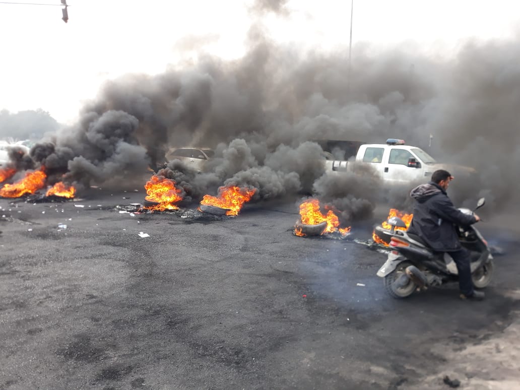 بالصور .. اغلاق تقاطع البهو بالاطارات المحترقة وسط الناصرية