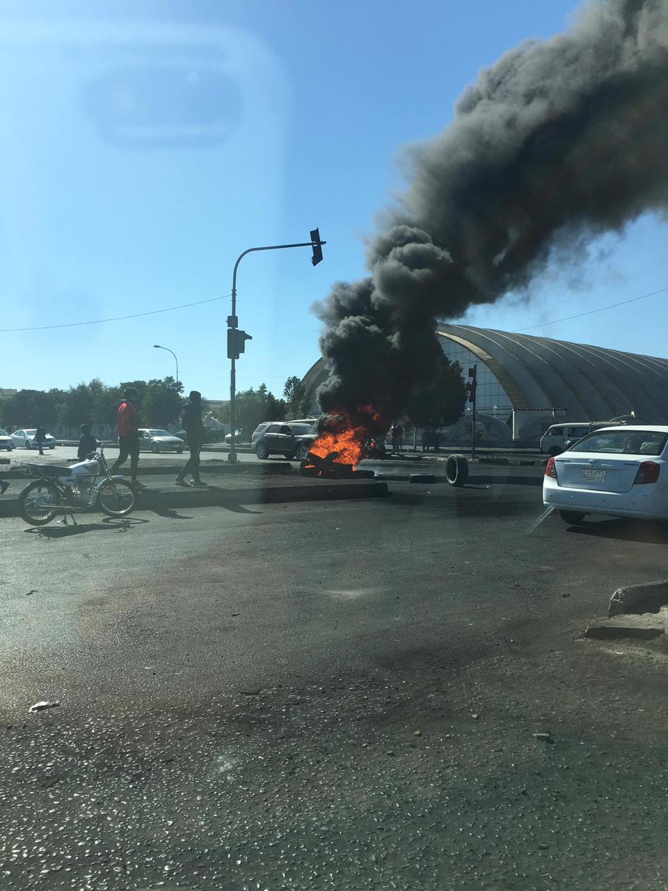 متظاهرون يغلقون تقاطع بهو الادارة المحلية بالاطارات المحترقة وسط الناصرية