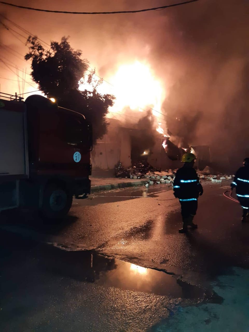 بالصور .. اندلاع حريق داخل مخزن للاجهزة الكهربائية وقناني غاز التبريد في الموصل