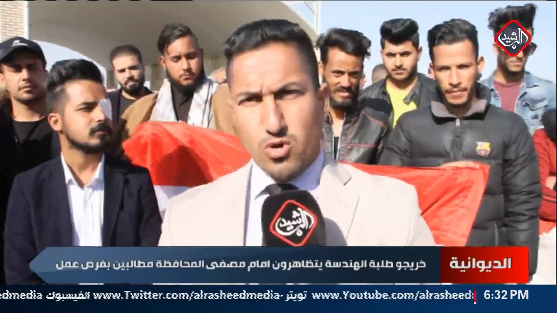خريجو طلبة الهندسة يتظاهرون امام مصفى المحافظة مطالبين بفرص عمل