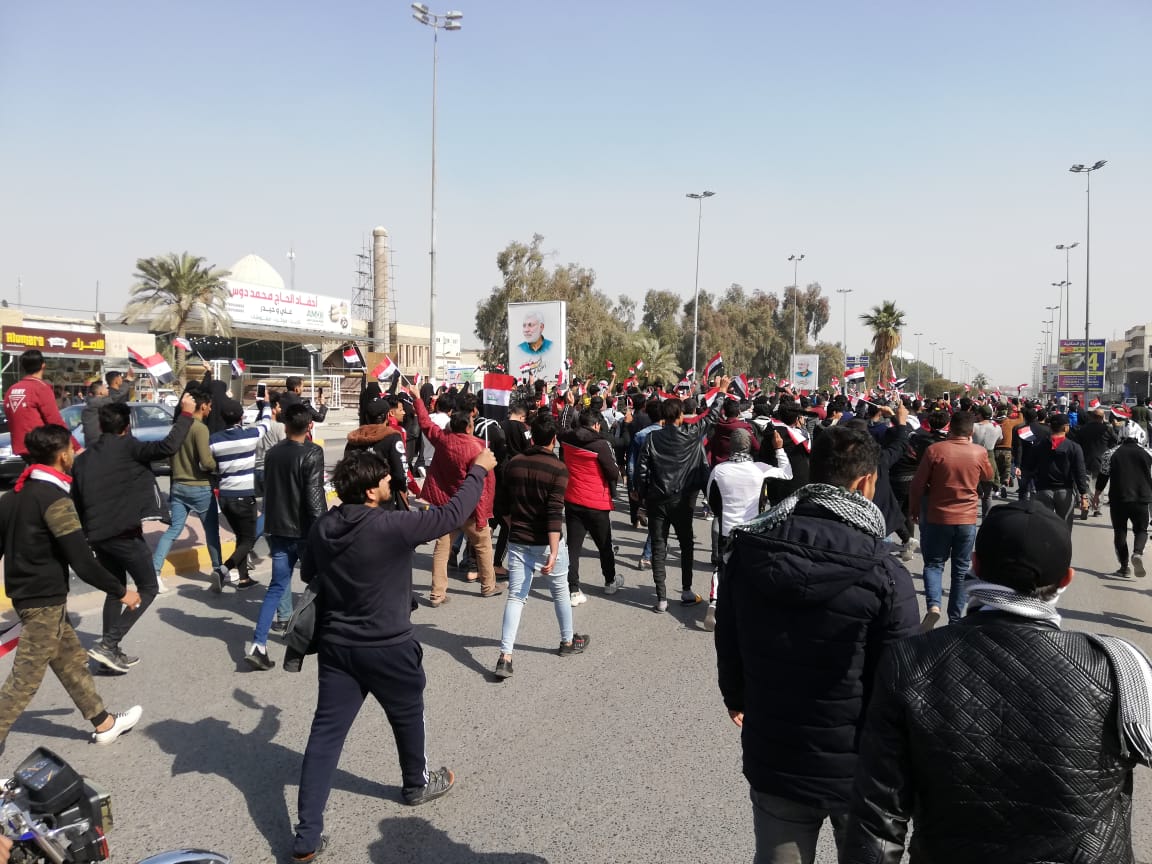 بالصور .. انطلاق مسيرة نحو ساحة الصدرين انطلاقاً من مجسرات ثورة العشرين وسط النجف