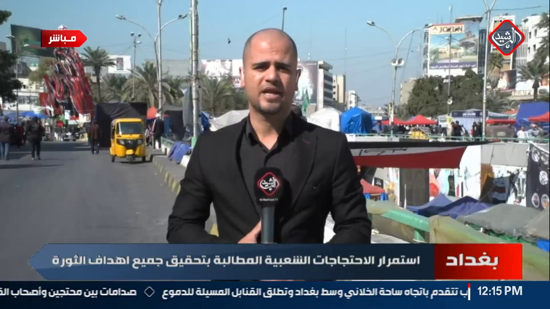 مصدر: اصابة 3 متظاهرين بصدامات مع اصحاب القبعات الزرق قرب نفق التحرير وسط بغداد