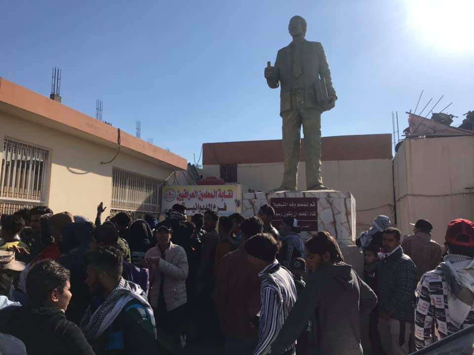 بالصور .. محتجون يغلقون مديرية التربية ومبنى نقابة المعلمين في الديوانية