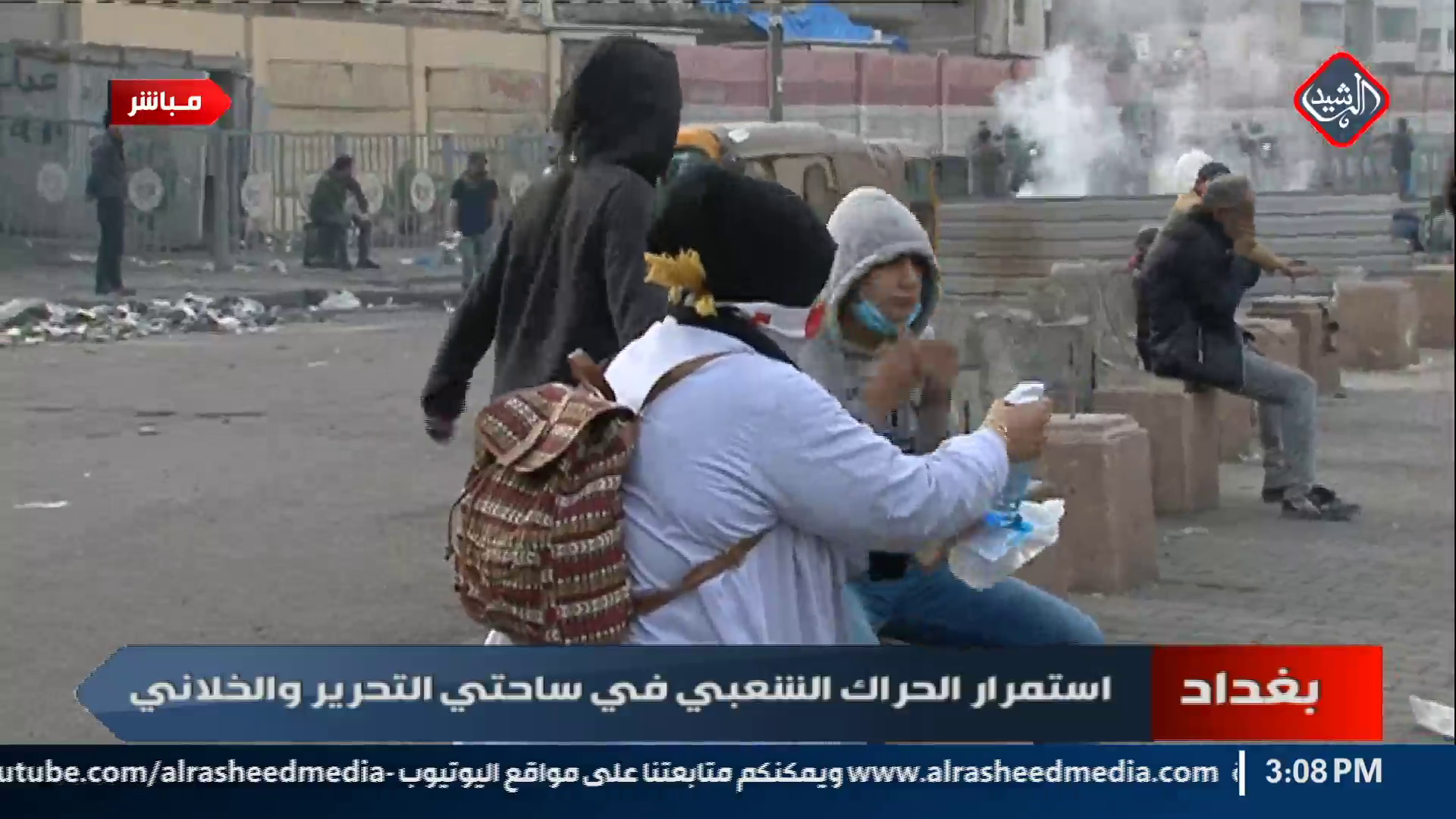 تجدد الصدامات بين المتظاهرين والقوات الامنية في شارع النقيب وسط كربلاء