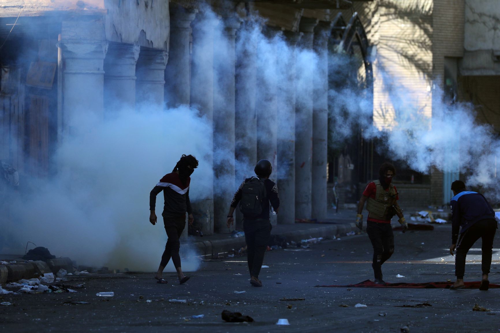 تجدد الصدامات بين القوات الامنية والمتظاهرين ضمن ساحة الخلاني وسط بغداد