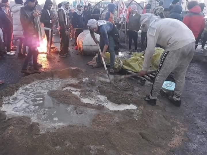 بعد حرق خيمهم .. متظاهرو ذي قار يباشرون ببناء سرادق من الطابوق والبلوك