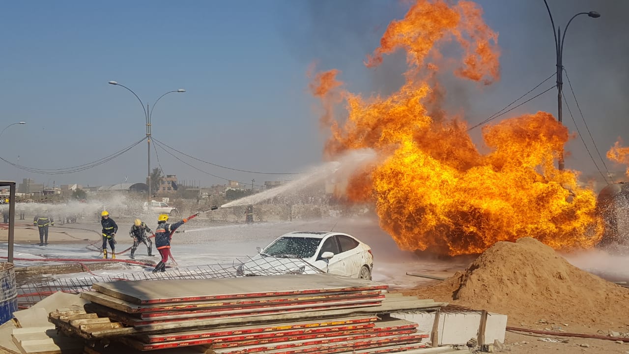 بالصور .. اخماد حريق اندلع في 20 طناً من الغاز السائل نتيجة انقلاب صهريج في بابل