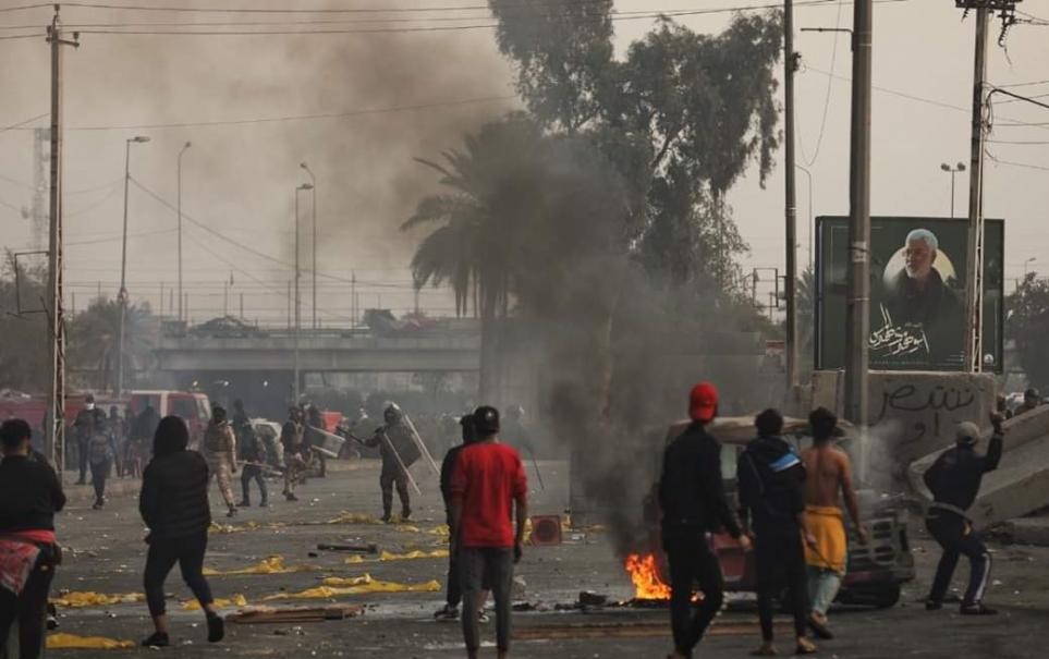 مصدر امني: تسجيل 12 حالة اختناق واصابة بين المتظاهرين في ساحة الطيران وسط بغداد